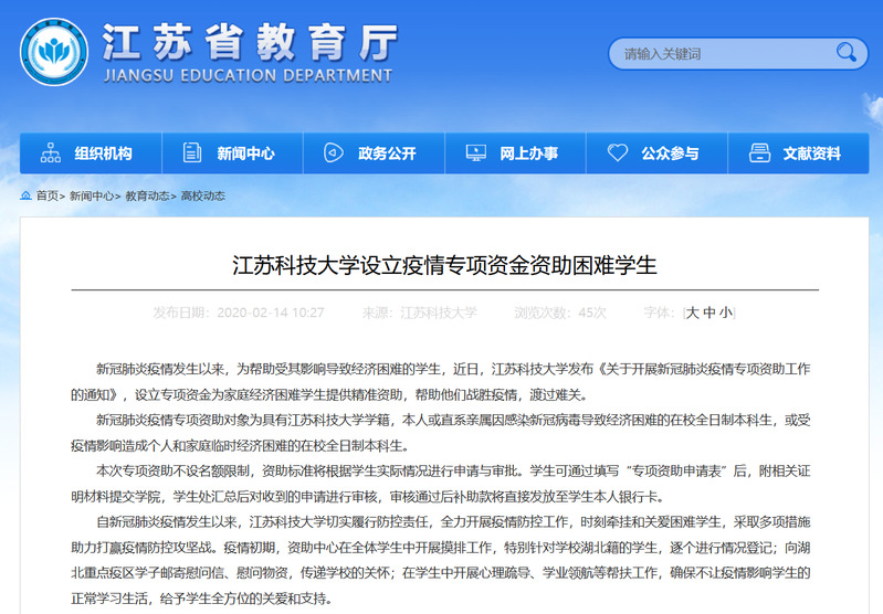 江苏省教育厅 2020年2月14日
