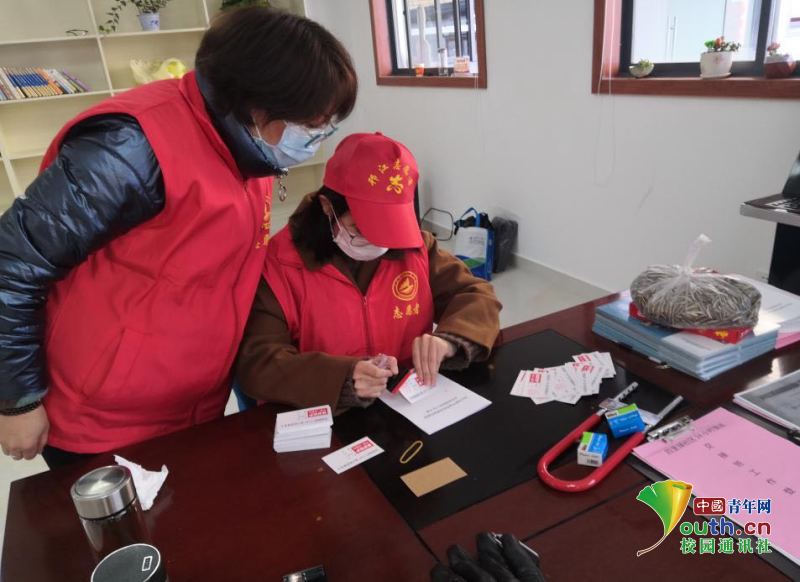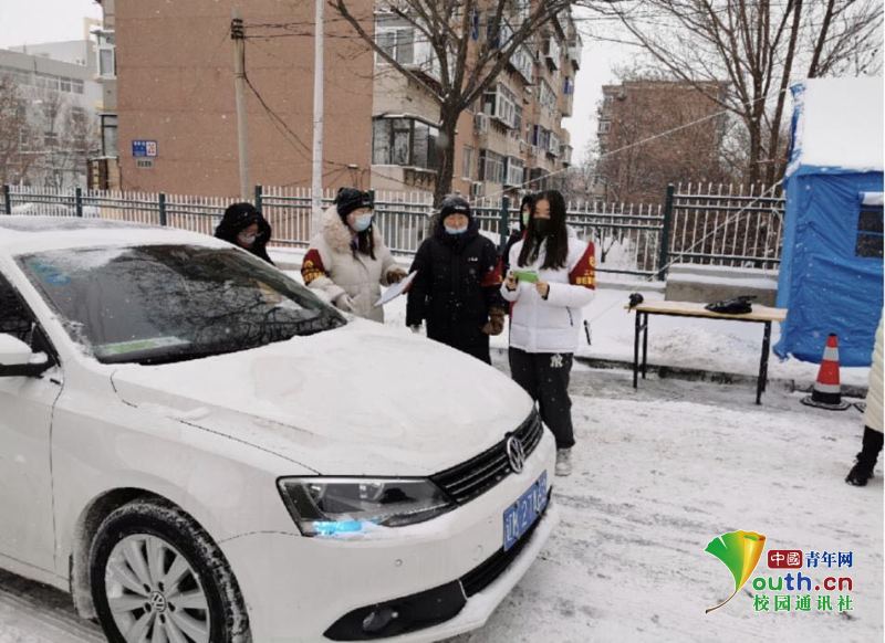 18级学生丁沁琳,积极参与社区志愿者工作中,在社区办公室里,她按照要求查看、确认并盖章每家每户的出入通行证与负责人联系信息卡;在负责的社区里,她随同社区相关区域的工作人员一起上门为居民登记返乡时间等详细信息;在社区设置的卡口处,她与其余团员、党员志愿者一同在雨雪寒风中值班,认真检查出入卡口人员的通行信息证明;在社区工作人员忙碌时,她与其余志愿者一同帮忙录入登记工作证明的联系信息……