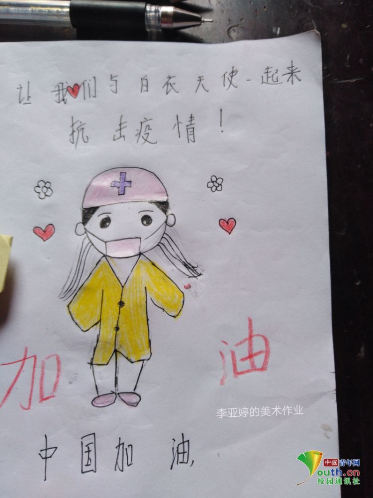 在开始云课堂支教前,指尖梦天使支教团的成员们向家长和小朋友们发放了一份“疫情知多少”的问卷,经过整理汇总后,15日下午,支教队员们开展了一节疫情防控课。课上,支教队员针对调查问卷中错误率较高的问题耐心地向家长和小朋友们进行讲解,并指导大家如何正确洗手和佩戴口罩。在观看了一段全民抗击疫情的小视频后,孩子们不禁发出“中国加油!”的心声。孩子们将对祖国的祝愿寄托在画笔上,也希望通过这节疫情防控课,能增强小朋友们对新冠的预防意识,不惧病毒,积极防疫。国难当头,祖国上下众志成城,携手同心共克时艰,也激起了志愿者的斗志,虽然不能奋战一线,但是也希望能尽自己一点绵薄之力帮助偏远地区普及疫情防控知识。疫情终会过去,我们共同期待春暖花开。