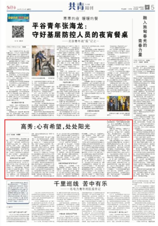 高秀是山东人,长发飘飘、个子高挑、声音柔美、话语简短、决定果断,是同事眼中“话不多、高学历、高颜值”的“花木兰”。当学校接到上级任务,需要选派一名外语专业教师前往上海进出口岸协助防疫工作时,高秀觉得“其他同事肯定都能胜任,但家里都有孩子需要照顾。而我孤家寡人,父母在山东,又是翻译专业出身,舍我其谁?” 于是,她第一个主动请缨:“作为一名年轻老师,我有精力、体力、能力,我去吧。”