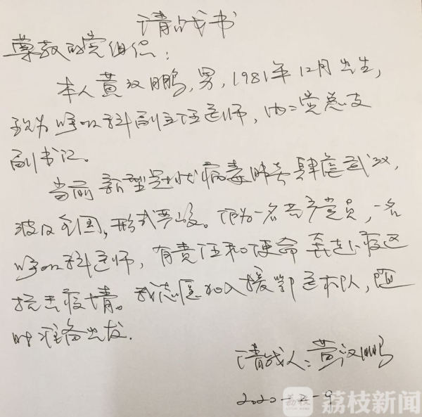 岂曰无衣,与子同袍。为了守护共同的家,江苏数千名白衣战士与自己的小家别离,奔赴湖北抗击疫情最前线。江苏大学附属医院呼吸科副主任医师黄汉鹏,就是其中一位,他的故事要从一首词说起。