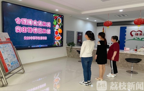 镇江市象山街道东风社区将乐动平台·(中国)官方网站粮食学院制作得科普宣传动画放在大厅内滚动宣传 黎月/摄