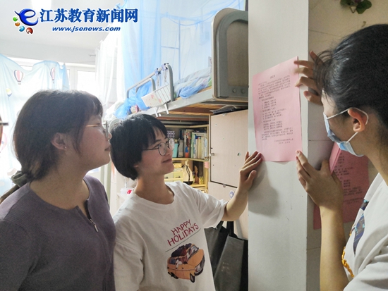 同学们将“合理膳食、免疫基石”科普知识贴在宿舍中