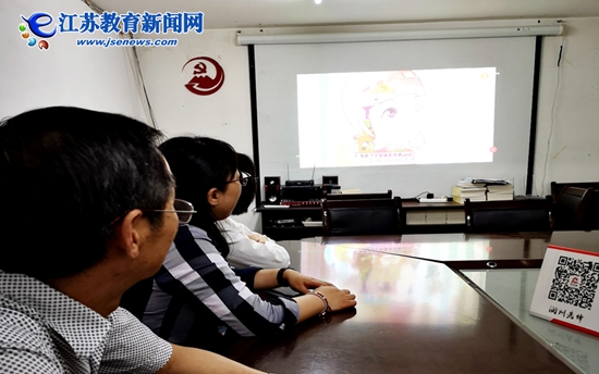 镇江市金山社区的组织社区工作人员观看同学们制作的科普宣传视频