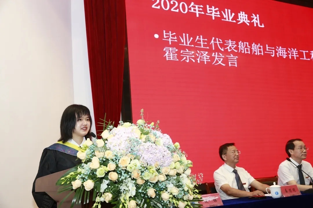青春的你们永远是江科大的骄傲。你们身上已经打上了鲜明的江科大烙印,不论将来你们身处何地、从事什么职业,一定会吃得了苦,扎得下根,聚得齐心,干得成事。愿你们面对未知和未来,都保有一种好奇和探索,积累经世致用的才识;对待挫折和困难,都保持一种豁达和豪迈,养成笃学明德的气度。今天,当你们跨出校门,又有了一个共同的身份——江科大校友。和你们拥有同样身份的还有我国航母、核潜艇、极地邮轮的总建造师、总工艺师等。校友走多远,学校的疆域就有多远。不管你们毕业有多久,也不管你们走得有多远,母校会永远关心、关注着你们。青春的故乡在江科大,我们共同的精神家园是江科大。请记得,有水的地方就有船,有船的地方就有江科大人,有江科大人的地方,就有你们的家!