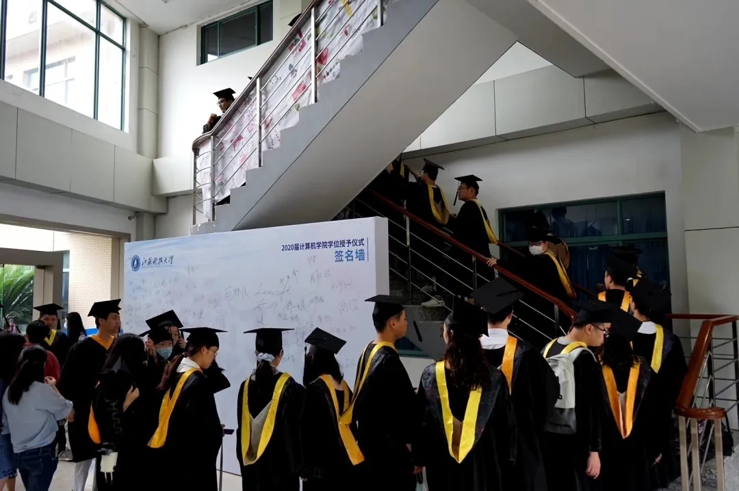 前段日子,我在江科大的百度贴吧里看到一个帖子,帖主从2018年9月开始给自己大学的剩余时光做倒计时,记录了学校生活的点点滴滴,泡着枸杞去图书馆自习,每天坚持背着100个单词,坐着105路公交去逛万达,坐着18路公交在三个校区间来回,看着那南山下的银杏,小牛村的月色,东校区的梧桐。最后,这位同学秀出了今年的考研成绩——暨南大学思想政治教育专业总分411分。不知道这位同学今天来了没有?我想跟你说一句毕业快乐!谢谢你,你真正做到了“只争朝夕,不负韶华”!同时,也要祝福2020届全体毕业生同学!谢谢你们,把最美的青春时光留在了江科大!