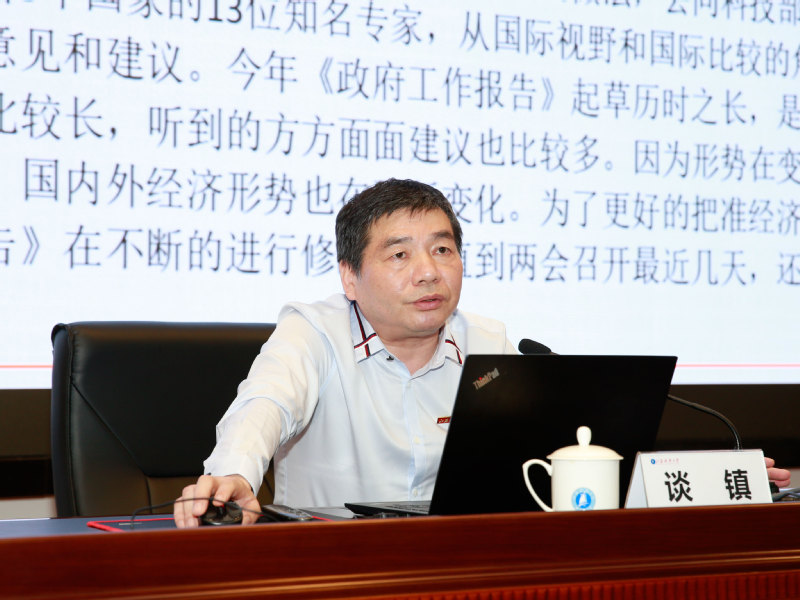 7月6日下午,校党委常委、副校长谈镇围绕“两会精神”与江苏高质量发展作《乘势而上开启全面建设社会主义现代化国家新征程》主题报告。他在报告中从2020两会八大看点出发,带领大家学习领会两会精神,深入分析了当前的经济形势,阐发了高速度发展转向高质量发展的逻辑,并结合自身研究成果给出推进江苏高质量发展的思路建议。
