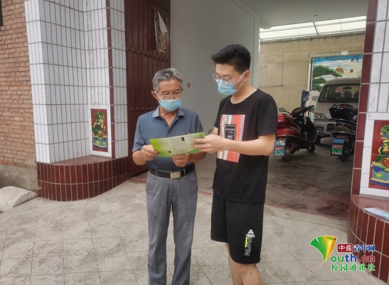 图为团队成员向附近居民介绍粮食储藏知识。中国青年网通讯员 金柯 摄