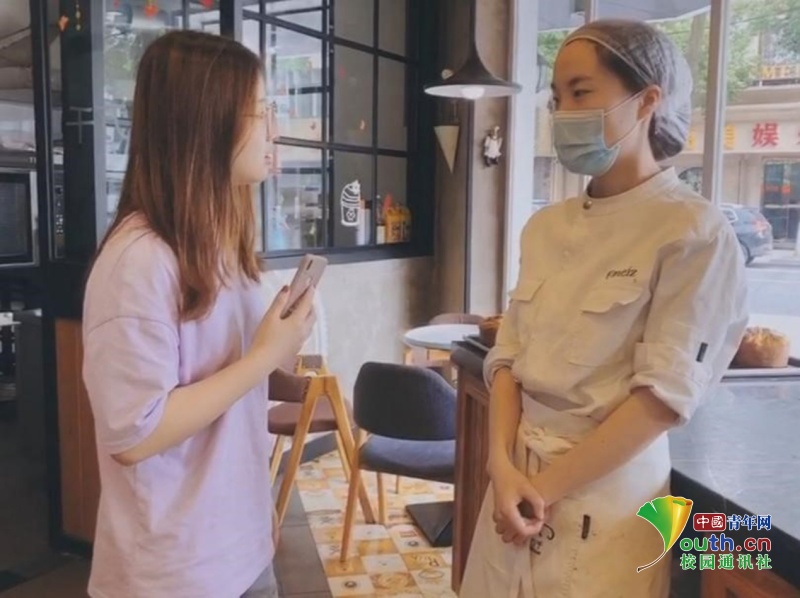 图为实践团队成员采访蛋糕店员。中国青年网通讯员 金柯 摄
