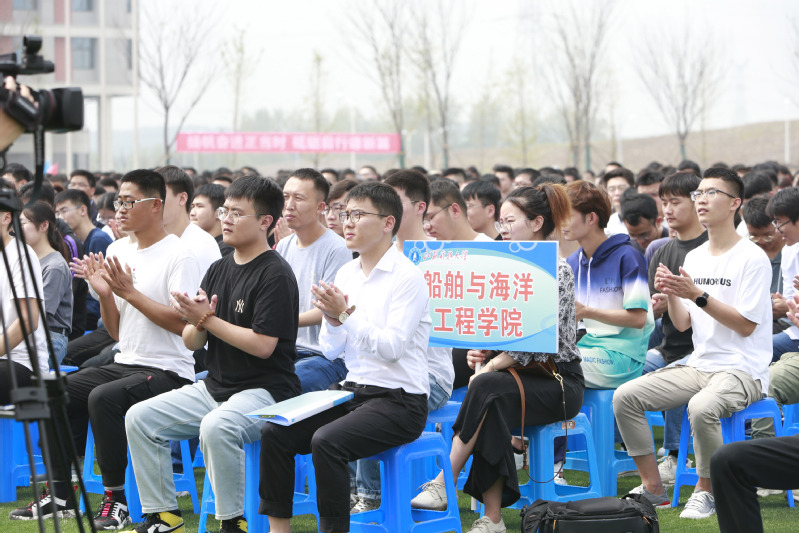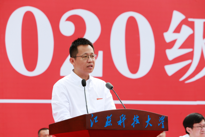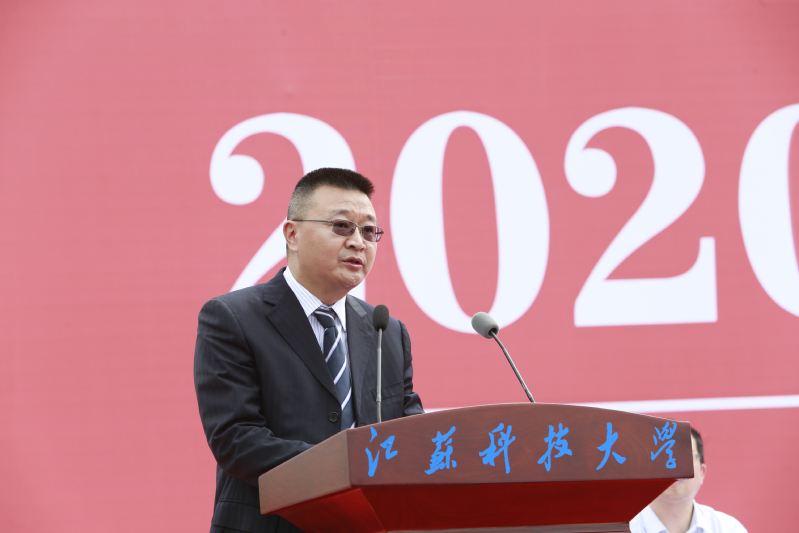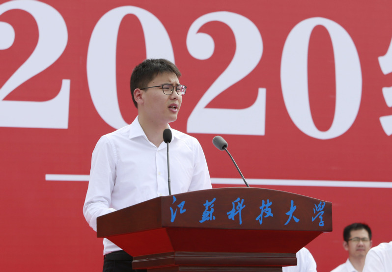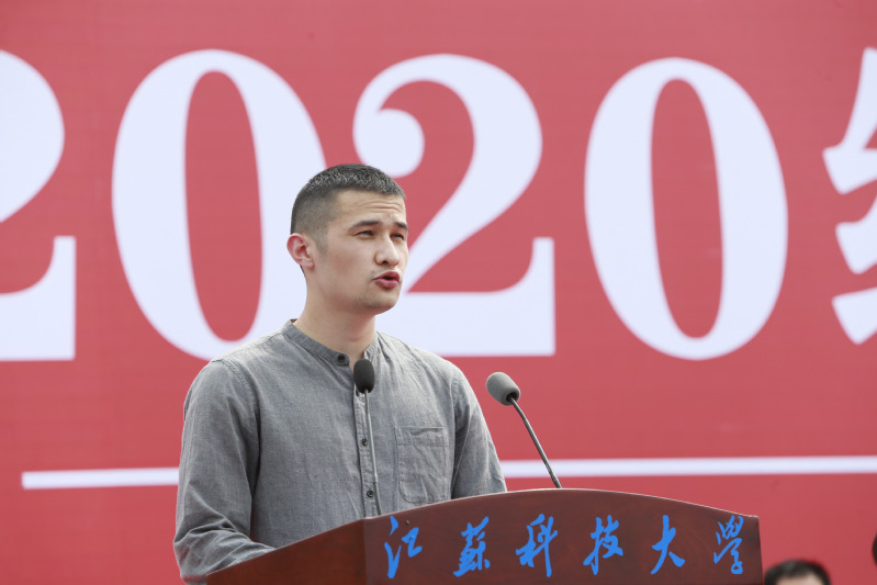 教师代表、经济管理学院党委书记王念新,校友代表、沪东中华造船(集团)有限公司LNG船总建造师何江华先生,2020级研究生代表、船舶与海洋工程学院李辰寅同学,2020级留学生代表、来自哈萨克斯坦的经济管理学院飞龙同学先后发言。