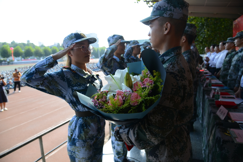 汇报会上,同学代表向教官敬献了鲜花。教官和同学们其实是同龄人,但他们的脸上明显多了一份刚毅和成熟,十六天的朝夕相伴言传身教,生动诠释了当代中国军人的侠骨柔情。他们眼中流淌的是敢打必胜的赤胆忠心,心中铭刻的是“为人民服务”的铿锵誓言。欢送教官仪式中,此起彼伏的掌声、依依不舍的泪水,军民渔水情此刻天然而朴实,真切而感人。