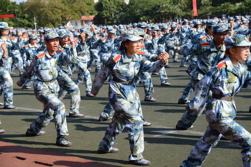 国旗方队、军旗方队雄纠纠、气昂昂,率先通过主席台。各营方阵紧随其后,坚毅的神情,高亢的口号,强劲的步伐,无不挥洒着青春的力量。巾帼不让须眉的匕首操、气势恢宏的棍术操练、所向披靡的军体格斗、大气磅礴的军体拳、凌厉矫健的模拟战术、热烈活泼的拉歌,精彩纷呈的表演博得了现场观摩师生阵阵掌声。