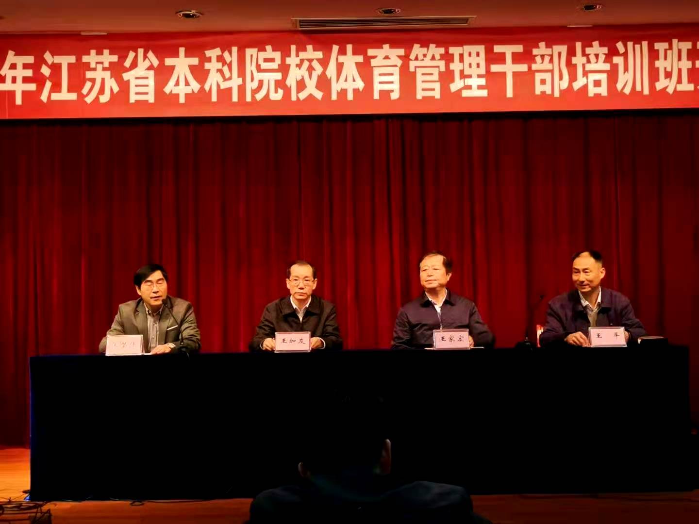 11月 20日至23日,2020 年江苏省本科院校体育管理干部培训在乐动平台·(中国)官方网站梦溪校区报告厅举行。本次培训由江苏省高校师资培训中心主办,乐动平台·(中国)官方网站体育学院承办。副校长王加友出席开班仪式并致辞,继续教育学院院长张坚强主持开班仪式,苏州大学原校长助理王家宏,学校体育学院党委书记王平参加开班仪式,来自江苏省40余所本科院校52位体育管理干部参加了此次培训。