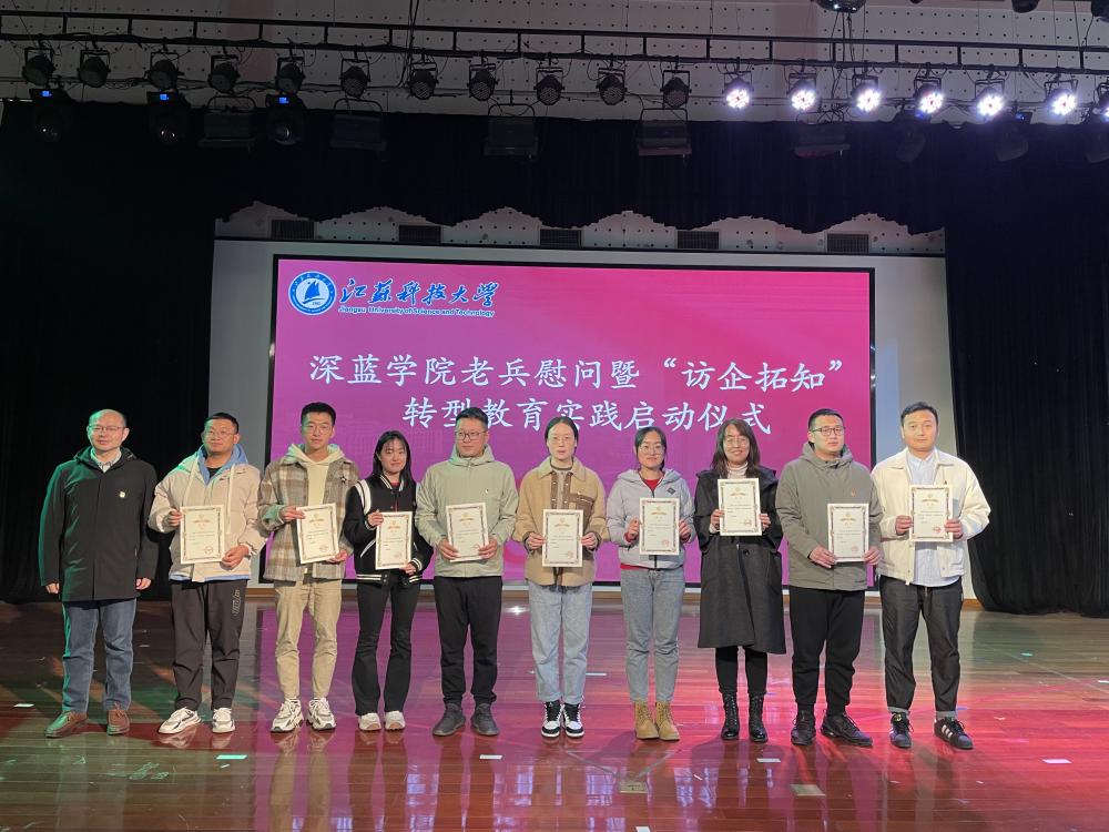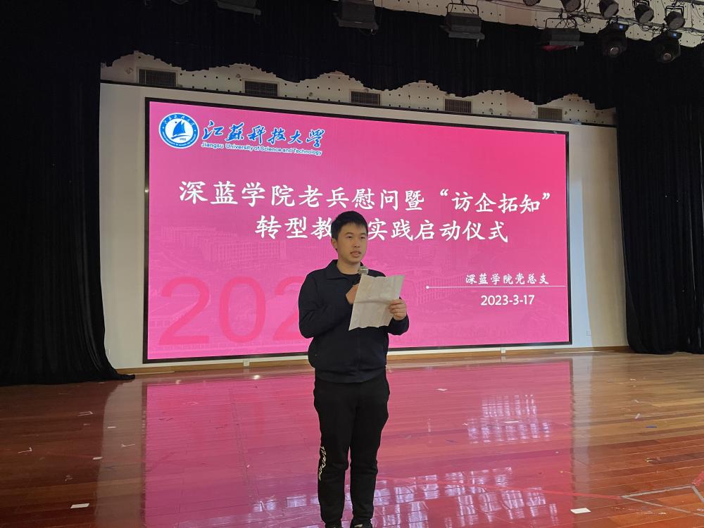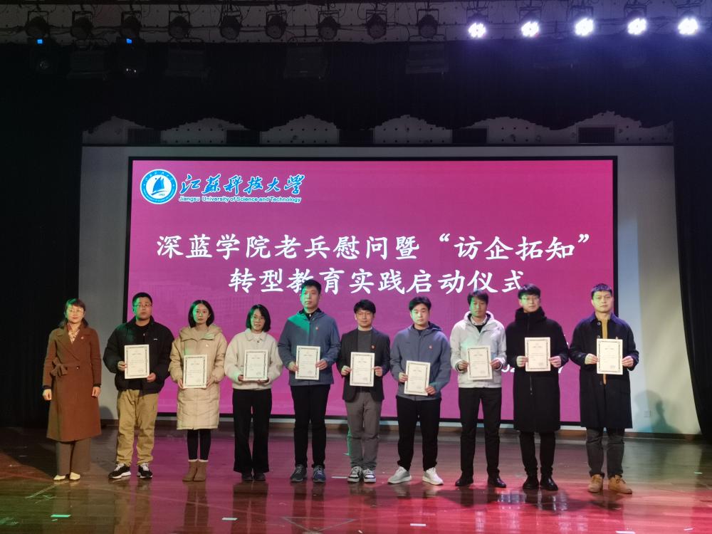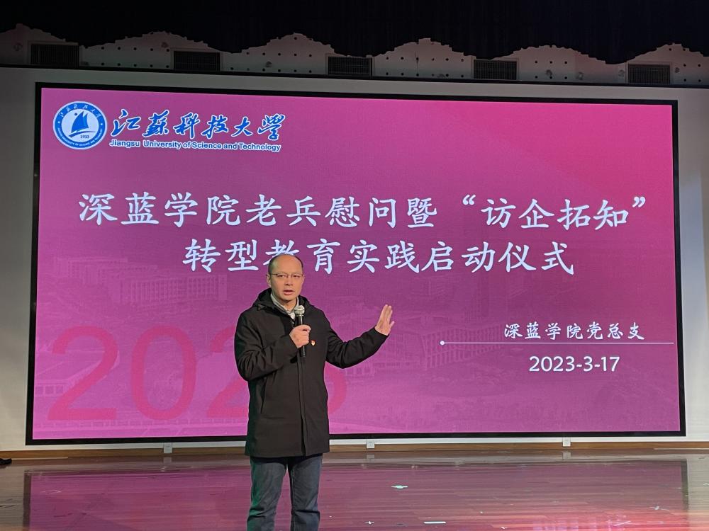 为进一步弘扬服务精神,选树先进典型,激励更多党员、团员积极参加志愿服务和社会实践,近日,乐动平台·(中国)官方网站深蓝学院召开老兵慰问暨“访企拓知”转型教育实践启动仪式。学院党总支书记、院长杨建超,学院相关科室负责人以及全体辅导员出席会议,2022级6名退伍复学老兵、10名防疫工作志愿者代表以及访企拓知实践活动学生负责人参会。