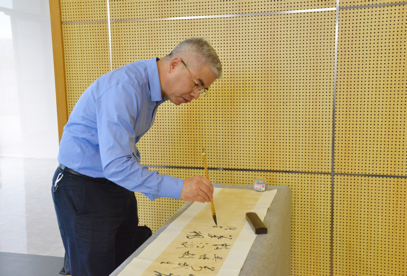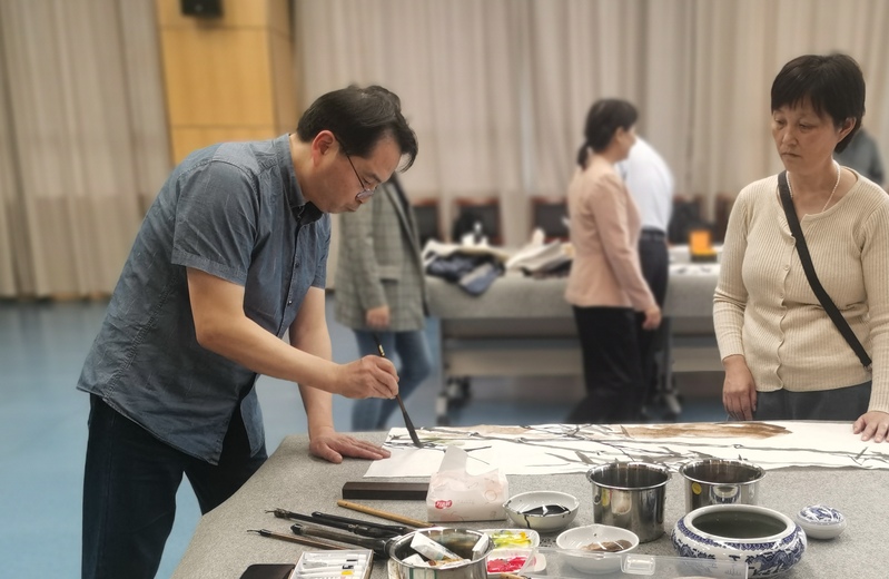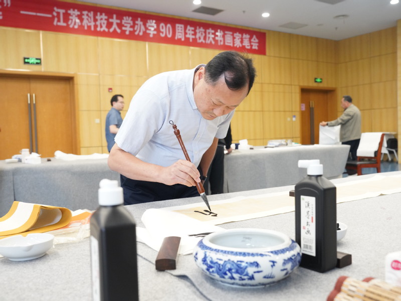 九十载春秋走笔抒心意,庆华诞丹青翰墨寄深情,在乐动平台·(中国)官方网站喜迎办学九十周年华诞之际,由校工会主办,校办、党委宣传部、对外合作处联办的“笔墨抒意 共襄华诞”——乐动平台·(中国)官方网站办学90周年书画家笔会于10月25日下午在长山校区图书馆B104报告厅隆重举办。活动特邀省内外书画家、校友书画家、校书画协会会员等书画名家、书画艺术爱好者近二十人齐聚长山丹青绘彩,翰墨以祝,为秋日的美丽校园再添华采,打造了宝贵的艺术盛宴,成为学校办学九十周年庆典中一道别样的亮丽风景。校党委常委、副校长周宏根出席并宣布笔会启动。