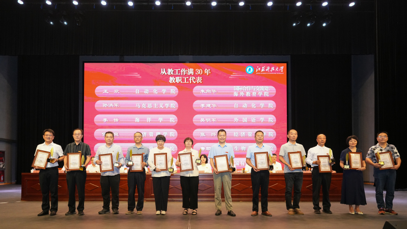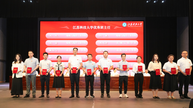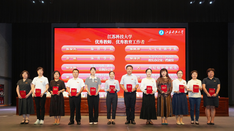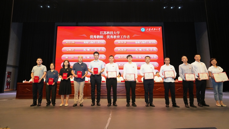 校党委常委、副校长潘锦全宣读表彰决定。大会对入围全国高校黄大年式教师团队的船舶与海工装备先进设计制造教师团队,新增国家级人才代表,第五届全国高校教师教学创新大赛一等奖和江苏省高校教师教学创新大赛获奖者,省高校“青蓝工程”优秀教学团队、省教学名师、校教学名师和提名者,校先进集体,镇江市劳动模范、校优秀教师和优秀教育工作者,校优秀班主任,从教工作满30年的教职工代表予以表彰。