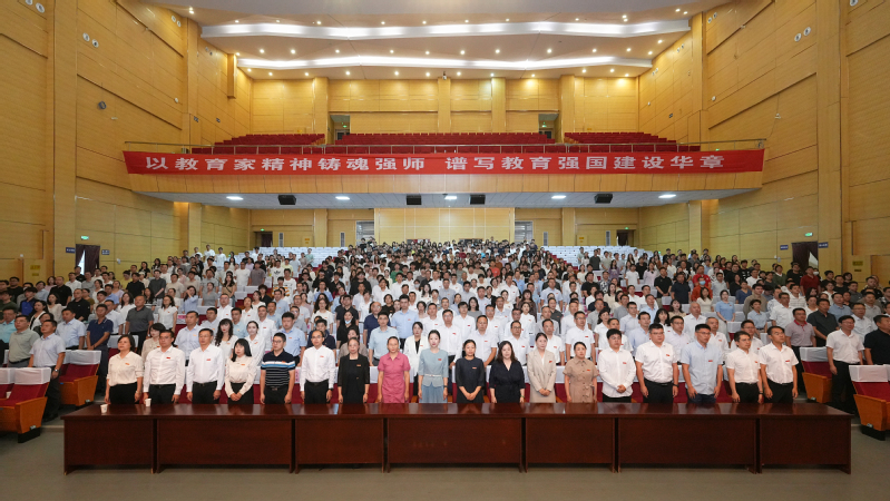 丹枫迎秋,硕果盈枝。9月10日,在第41个教师节来临之际,学校在长山校区船苑剧场隆重召开庆祝2025年教师节暨表彰大会。校党委书记杨建新,校长嵇春艳,全体校领导,党委常委,机关及教辅部门负责人,各学院院长、书记,受表彰人员、教师代表、新教师、学生代表隆重集会,共同庆祝这个属于广大教育工作者的光荣节日。