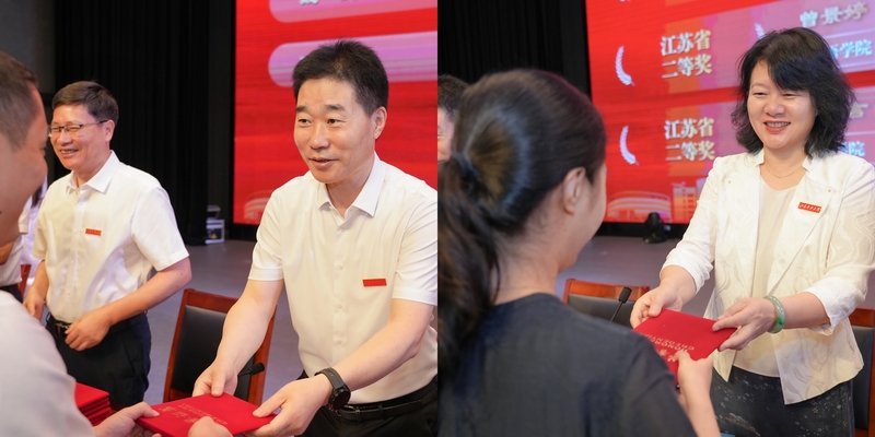 校长嵇春艳致辞,强调教师是立教之本、兴教之源,学校高度重视师资队伍建设,坚定不移实施人才强校战略。今年学校的高质量发展成果显著,汇聚着每一位江科大人的智慧和心血。她指出,教育家精神是引领教师发展的精神旗帜,应当成为广大教师的精神追求和行动自觉。如何践行教育家精神成为一名新时代的好老师,她向广大教职员工提出三点意见:一是牢记“国之大者”,勇担育人使命;二是弘扬“景荣春精神”,涵养育人初心;三是以“黄大年式团队”为引领,善于作为赋能发展。