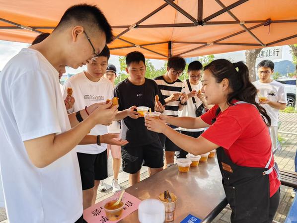 在稼穑学堂,新生家庭共同参与劳动实践,一起品尝学堂农田收获的红薯和暖心暖胃的红枣枸杞蜜薯汤,祝愿新生的大学生活像蜜薯一样软糯香甜、美美满满。