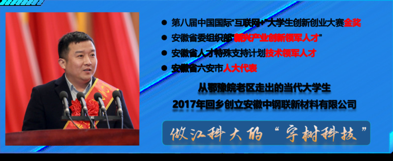 【人物简介】吕林,安徽省委组织部新兴产业创新领军人才,安徽省高层次人才;从鄂豫皖老区走出的当代大学生,获第八届中国国际”互联网+”大学生创新创业大赛金奖,回乡创立安徽中钢联新材料有限公司,乐动平台·(中国)官方网站2014届材料学院校友。