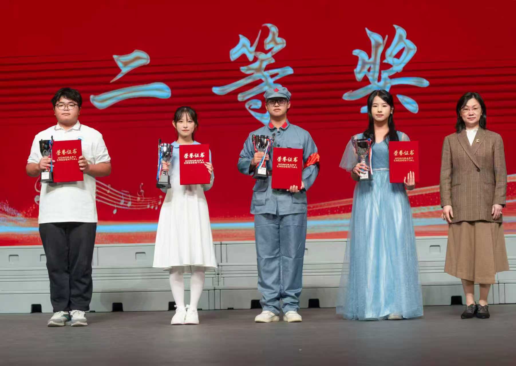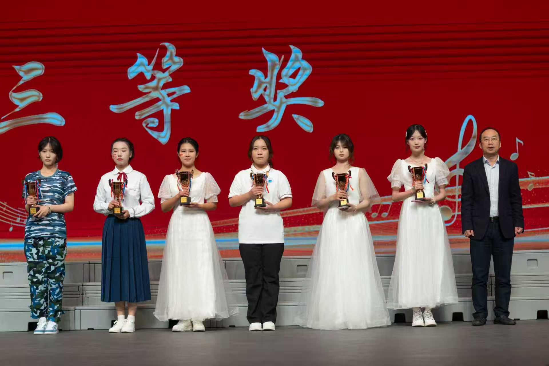 经过激烈角逐,评委团结合现场表现给出最终评分:理学院荣获小合唱组一等奖,机械学院、经管学院获二等奖,粮食学院、能动学院、材料学院获三等奖;经管学院荣获大合唱组一等奖,材料学院、机械学院获二等奖,理学院、自动化学院、人文学院获三等奖。机械学院、经管学院、材料学院、理学院荣获“优秀组织奖”。出席领导为获奖队伍颁发证书和奖杯。